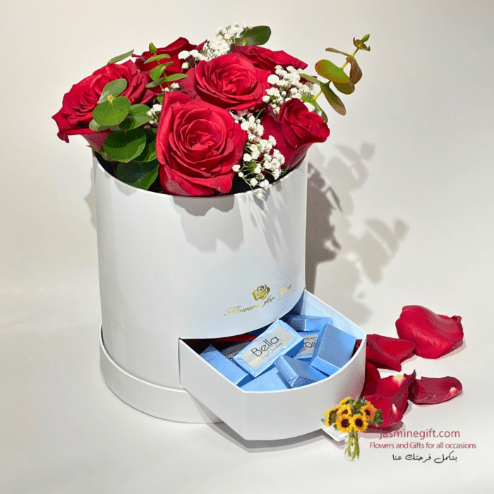 - The Passion Elegance Box is a stunning display of red roses, carefully arranged in an elegant box. Each rose exudes passion and love, making it the perfect gift for someone special in your life. Whether it's a romantic gesture or a heartfelt expression of admiration, this beautiful floral arrangement is sure to leave a lasting impression. Share your love and affection with the exquisite Passion Elegance Box from Jasmine Flowers & Gift in Amman. Order now and let your emotions blossom with every petal.